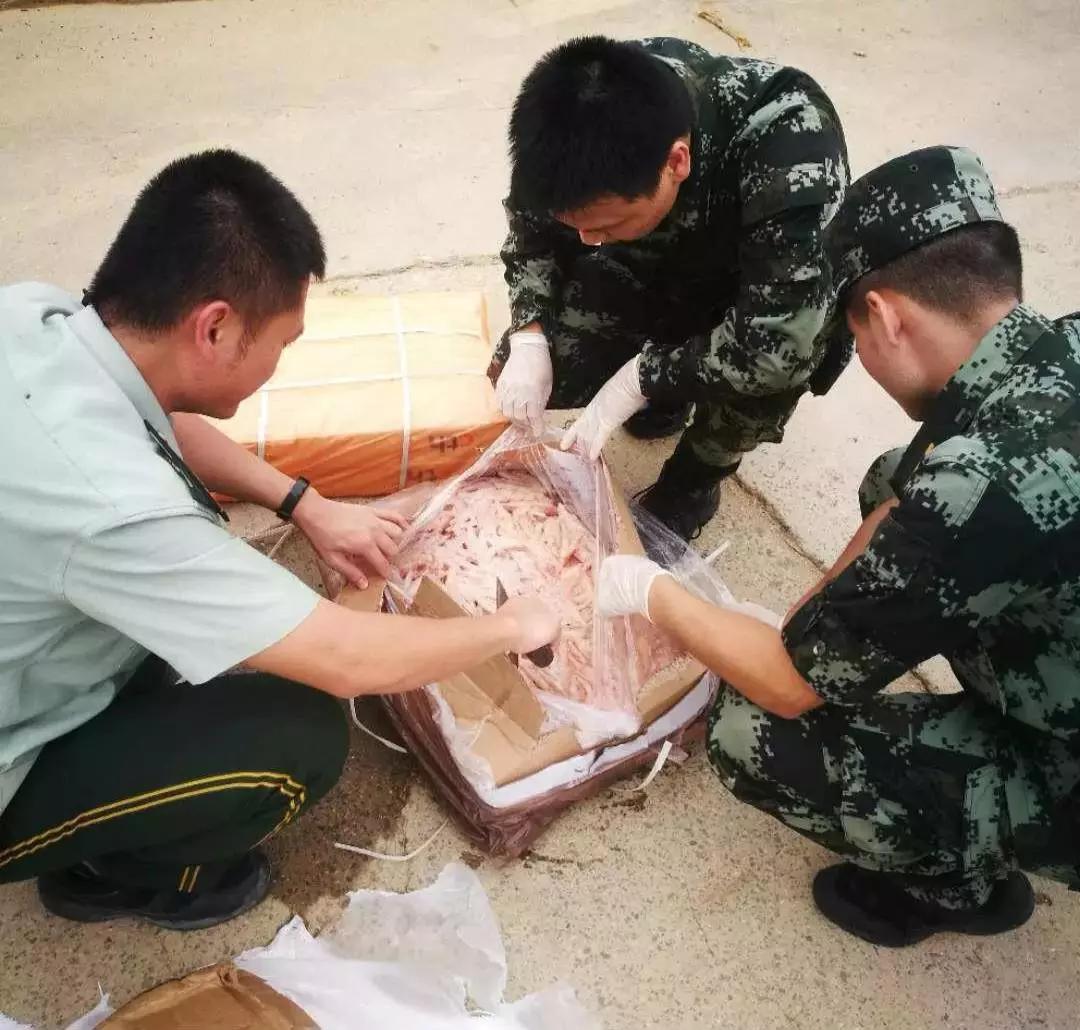 廣東海警相關負責人告訴記者,非法走私凍品通常存在兩種安全隱患,來自禽流感、瘋牛病疫區的有病肉會導致動物、人類疫情等情況,此外,肉類可能為相關化學指標不合格的毒肉、放置多年的過期肉及非法加入化學藥劑進行保鮮防腐的處理肉。