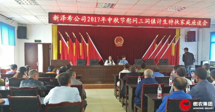 ▲四川傲農新澤希2017“雙節”慰問三洞鎮計生特扶家庭